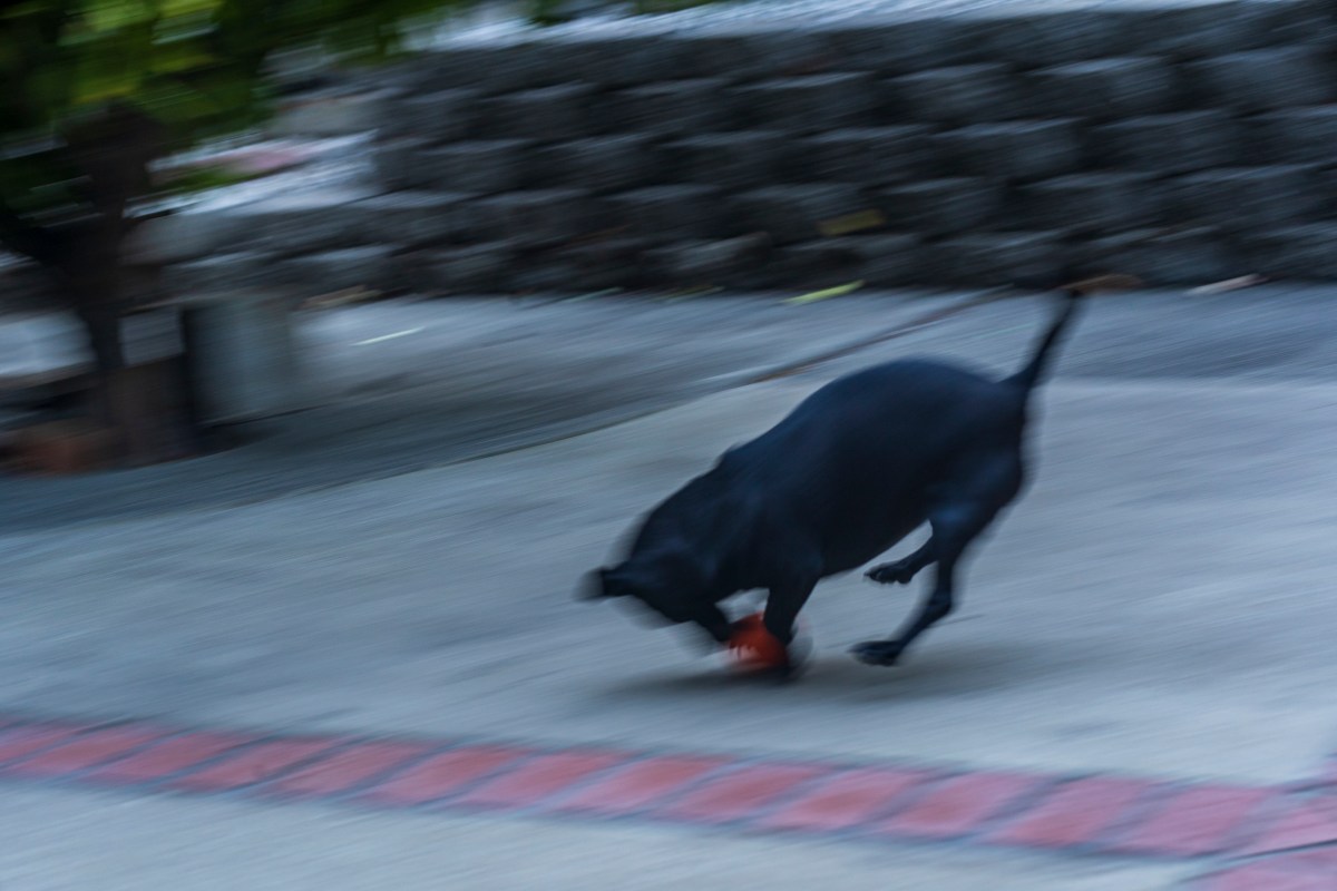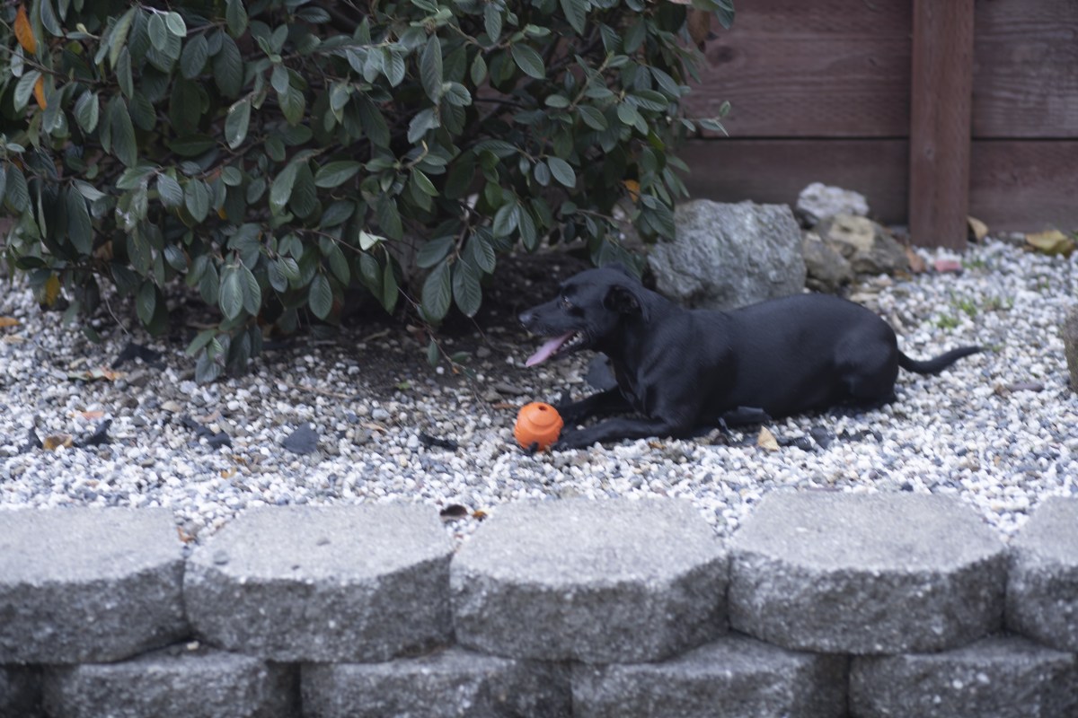 We all laugh watching Audrey with her ball. She would chase it for thirteen hours straight if someone would throw it. When you stop, she takes it away and chomps on it, but eventually tries to entice you to join the game again, rolling it toward you with her nose, quivering in anticipation. She ALWAYS retrieves it, sometimes racing to where it’s headed even before you’ve released it, anticipating like an NFL receiver. She starts with this serious, alert face: